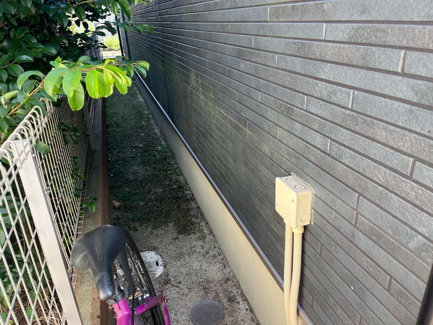 隣との間が狭く日当たりが悪い部分は湿気が多く苔が広い面で発生し、一部壁面にヒビが発生しているところも確認しました。
